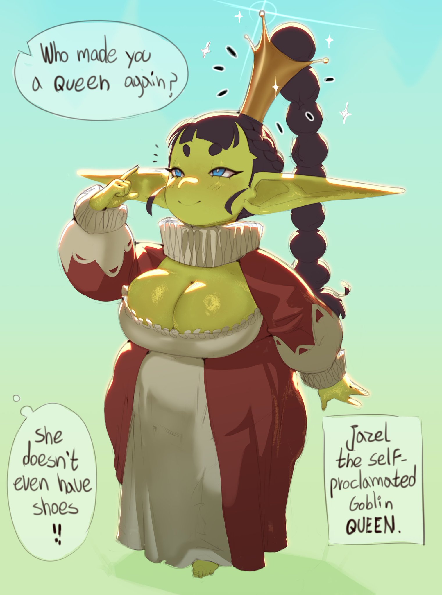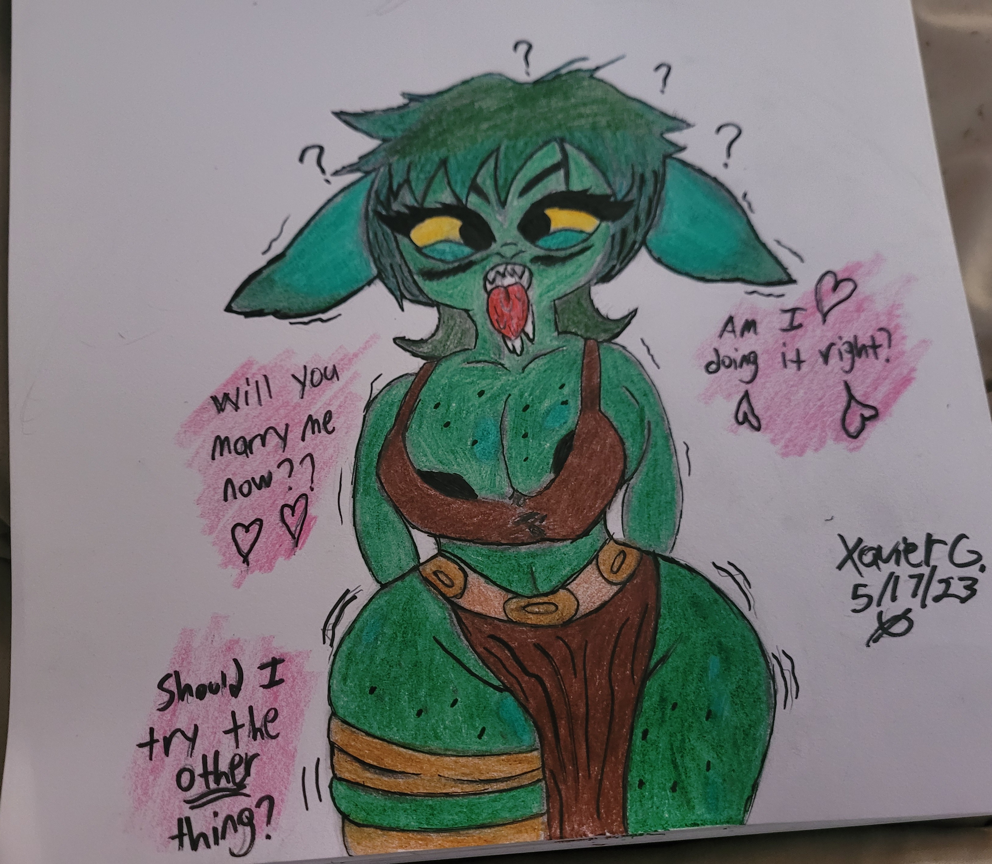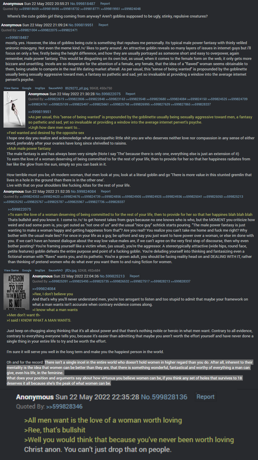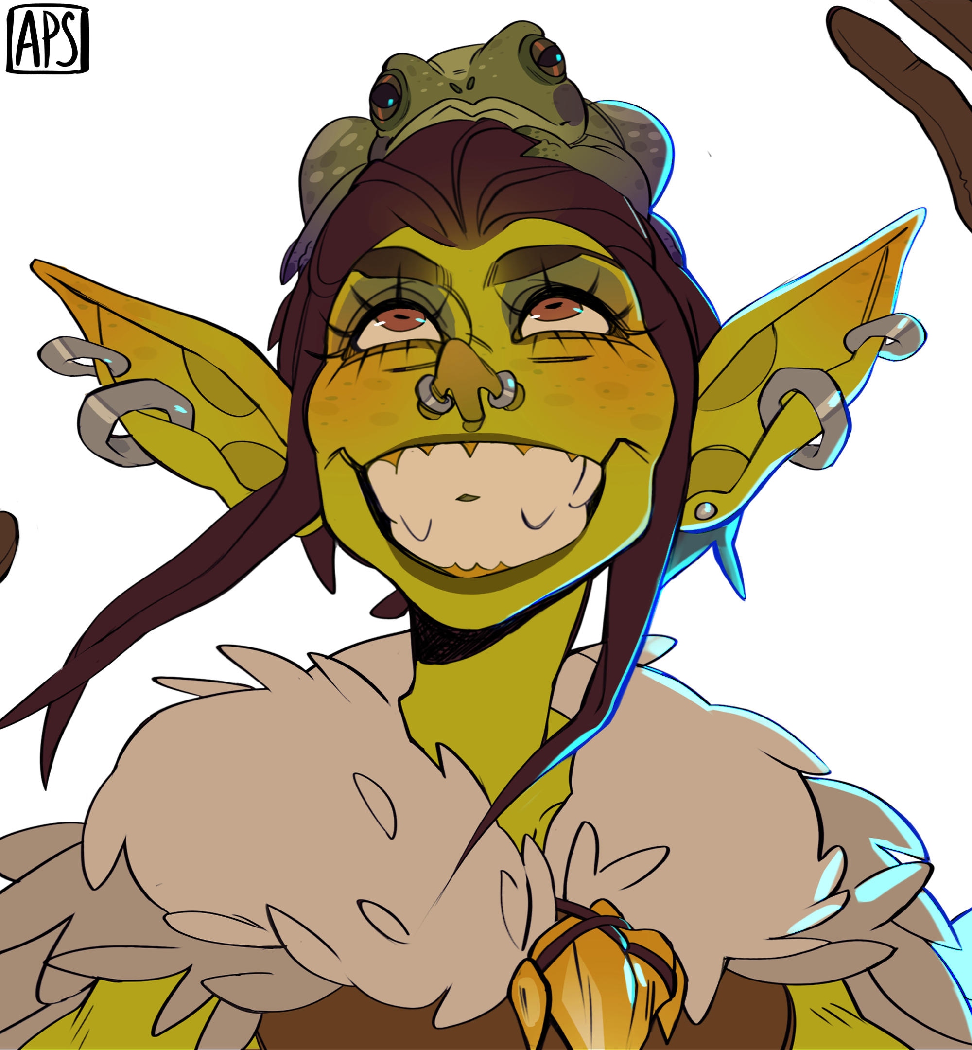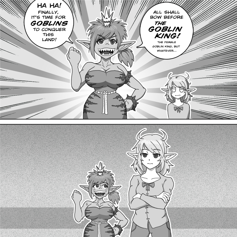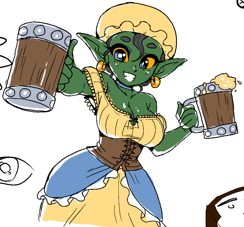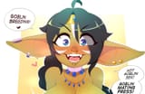 Humans of course, being nose-blind to such things, frequently fail to read a female goblin's intentions, giving rise to the stereotype of crazy or erratic goblin girls. While there IS some truth to this, as often as not it's a female frustrated to no end that her signals aren't being "heard" correctly, her instincts at war with her environment. Given time, effort and close proximity, human-goblin relationships can work, but more often than not it's the goblin female that has to learn to express herself with words alone rather than the richer word/scent hybrid language of her kind.
