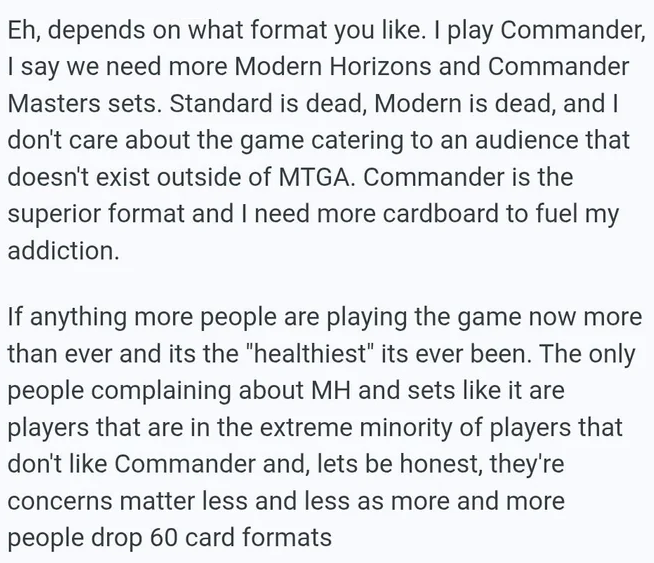That's what they said when people told wizards "do you really expect me to splurge $350 for a booster box of ultimate masters?".