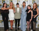 Dafne Keen with Hassie Harrison, Peri Nemiroff, Alexandra Shipp, Katie Douglas and Sophie Nelisse for Collider's ladies night panel at Comic Con