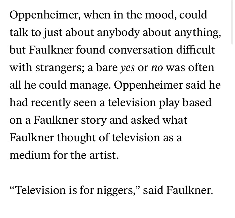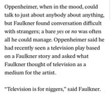To be fair TV got its first good entries in the mid 60s. Actual early tv (1940s-1965) was really rough. Faulkner died in 1962, I assume the quote is somewhere in the 50s.