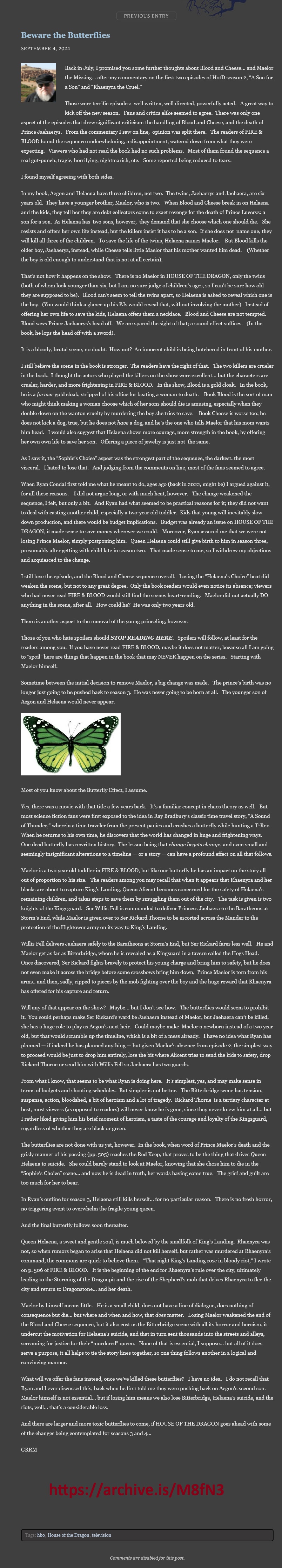 The fat man realizes that it's gonna piss off his fanbase so he's either backpedaling or he just doesn't give a fuck anymore. At best, he'll write 1 more book but no definitive conclusion.