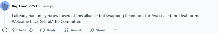 watched for about 2 seconds before buttoned i think keanu hates listening to rachel now that she put up his bro