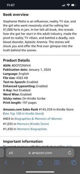 Just fyi. Her book is ranking really low. I am a nobody and my self-published romance novel did better than this.