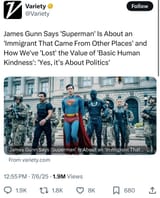 Gunn doesn´t understand Superman in the same way Disney doesn´t understand Star Wars or Netflix doesn´t understand the Witcher. Or maybe they do understand it but just don´t like it and want to make something different and just want the name for the associated consumer base.
