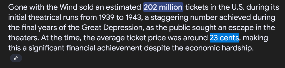 >>213947154 >Gone With the Wind released in the Great Depression >Twenty-three cents in 1939 had the same purchasing power as approximately $5.29 in 2024