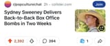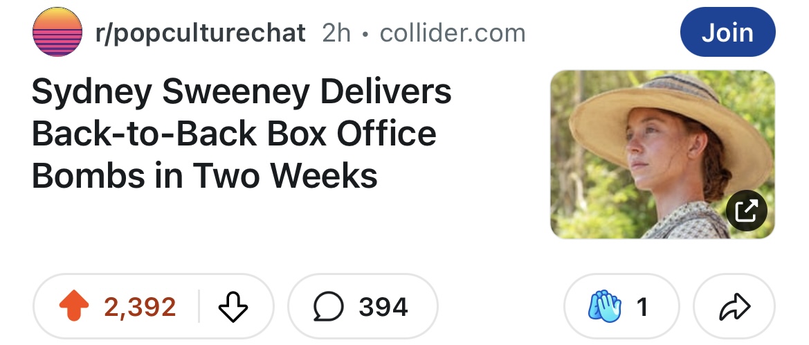 It's also why they're losing their minds and attacking Sydney Sweeney, calling her a literal NAZI, because they have nothing else to attack her with and jealous because she's what they wish they were and never will be and will die alone, unloved and forgotten in a cold, dark, empty room with nothing but regret, bitterness and self-loathing as your last thoughts before entering the eternal void where people like you belong while your ashes will be flushed down the nearest toilet because by then no one will care that you died, just as no one cares that you're alive now.