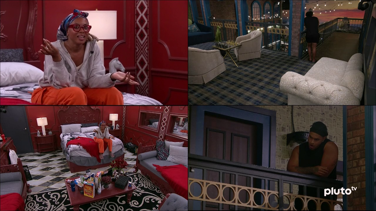 Morgan is filling the hags in on the things she was saying "out loud" up in the hoh