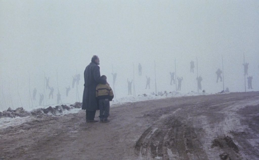 >IIRC there's a long shot of the monk-guys moving across the landscape that compares very well with the Seventh Seal shot