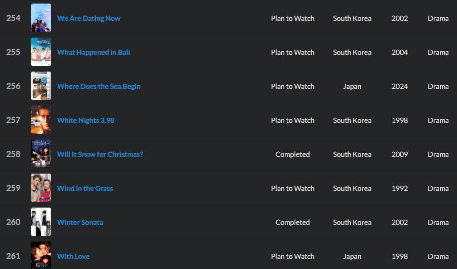 Older dramas: imgur.com/a/YanckyS