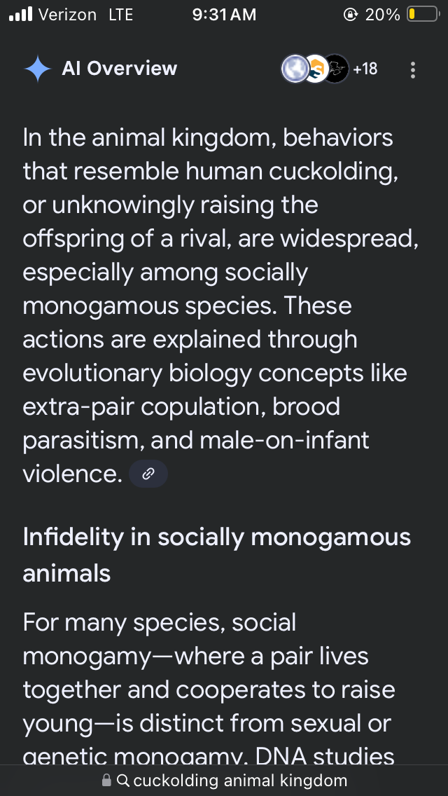 what is interesting is that i searched for "cuckolding animal kingdom" twice and AI gave me two slightly different answers.