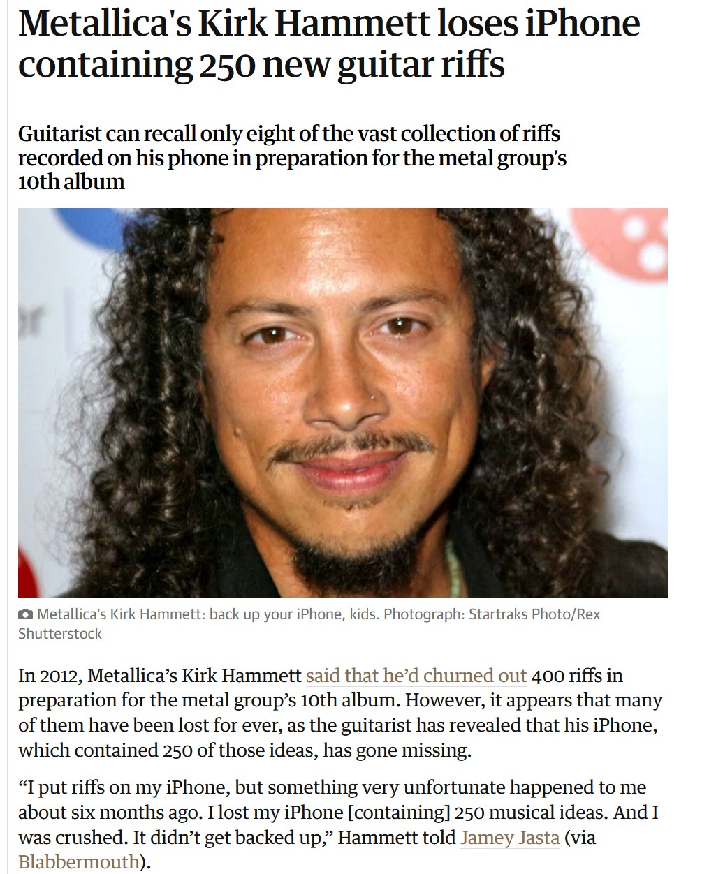 And when Jason does side projects where he can actually get credit for his work, Lars goes off with "HE LEFT THE BAND AFTER WE TOLD HIM THAT HE WASN'T WELCOME BACK! WE DIDN'T FIRE HIM AND JUST TOLD HIM THAT HE'S NOT WELCOME AROUND US FOR CHEATING ON US WITH A SIDE PROJECT, SO IT'S HIS FAULT HE'S OUT!