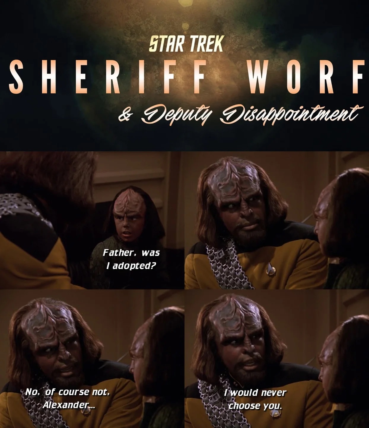 Nah Worf was awesome, if he only had as many appearances as Gowron he'd be unanimously loved. Being in the most Trek episodes out of anybody means some retard writer of the week gets to come along and cuck you many, many times. I don't hold his low points against him but I do hold his high points in his favour.