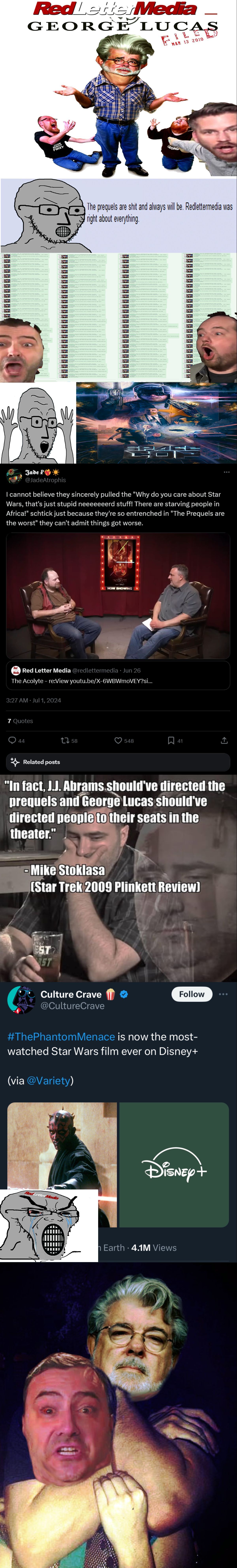 Okay. Fuck George Lucas. The prequels are shit and always will be. Redlettermedia was right about everything.