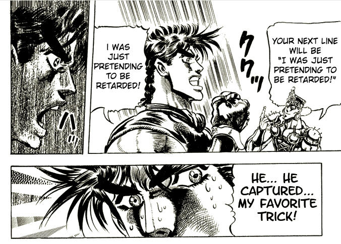 >Le good guy(TM) is cornered by an enemy orders of magnitude stronger than him. His demise is imminent. But wait a minute, something sneaks up behind the Bad Guy and kills him! Hooray!