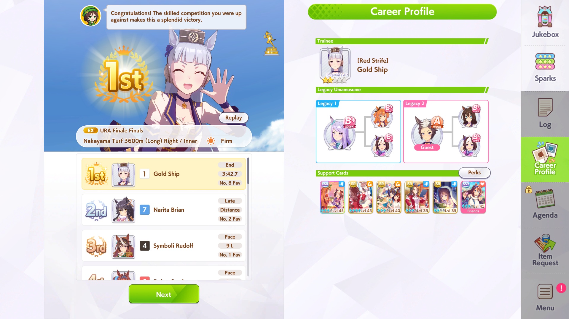 I run 4spe 2 sta, borrowing MLB Creek, getting another gold recov from free McQueen SSR or Gourmand from free Special Week