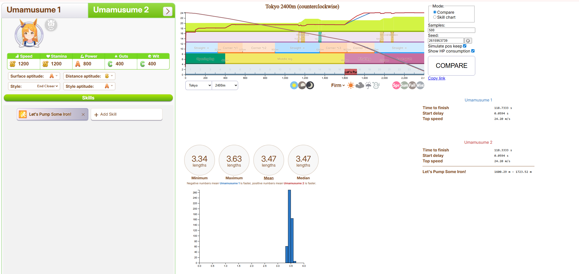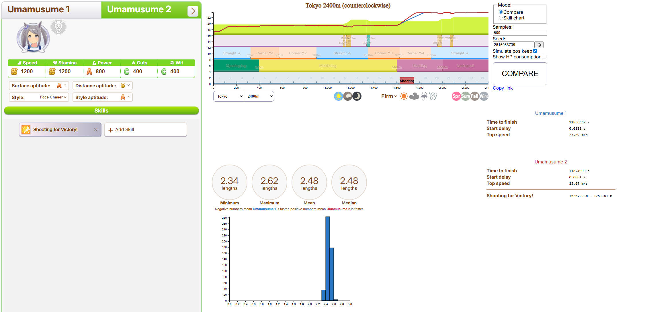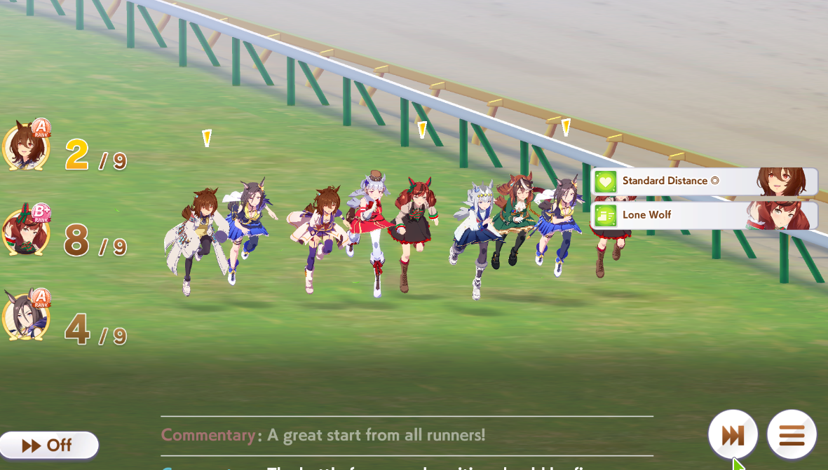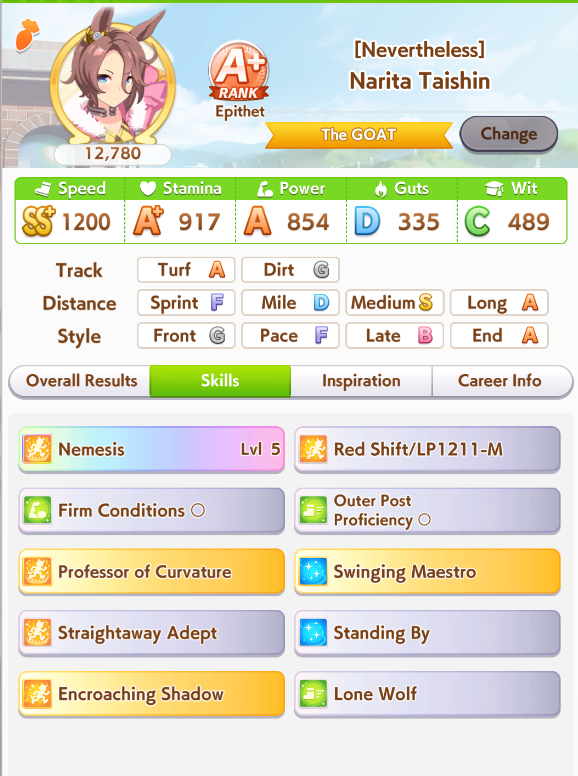 Tachyon/Creek is staple because they have unique recov, thus makes them easier to build. For this track Taishin is the most OP since she is the only one that has the gold skill that gives her 5-6 horse length distance on this track.