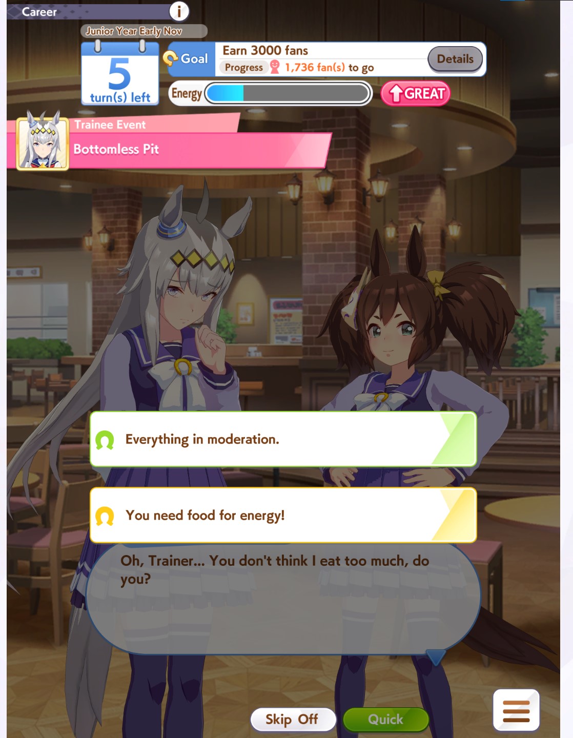 Tachyon is great as well if she's 3 stars, the only get rich quick scheme in uma musume is running quick careers like Bakushin for an easy 10000 gold per.