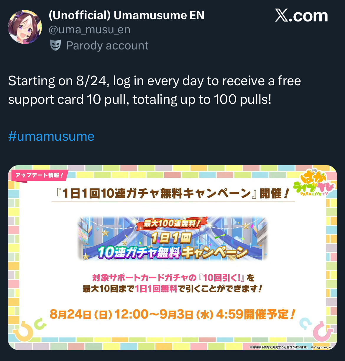 >Still have a great account despite being too late to the Special Week event