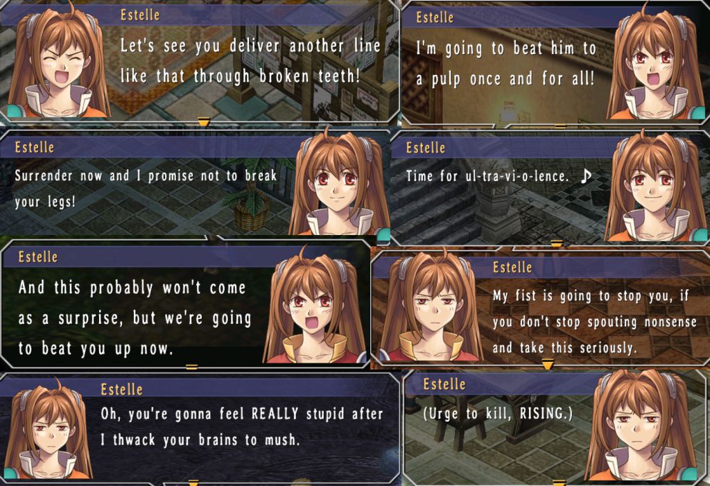 i've played the sky trilogy several times and one of them was with the voice patch that was ripped from the vita version that adds voice acting to just about every line. i'm aware of how punched up and exeggerated some lines are, but i still find myself preferring them most of the time.
