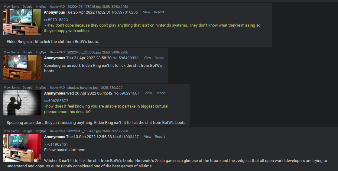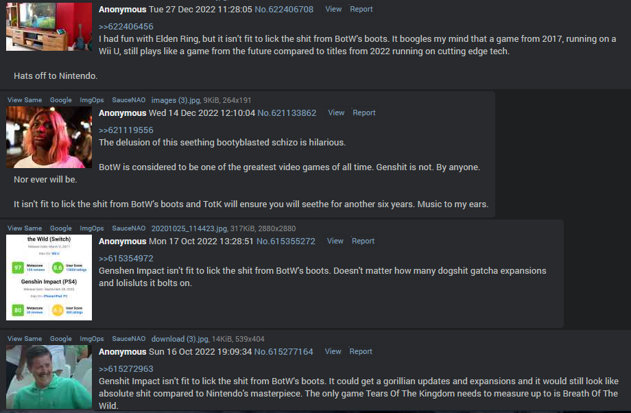 you now have botw drones trying to gaslight people into making them believe that they are completely innocent and that all the wrong has only been done to them when botw tards are some of the most evil and obsessed shitposters on this site.