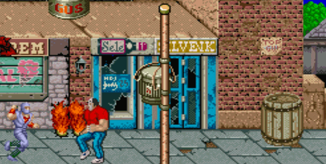 >one female character's breasts jiggle