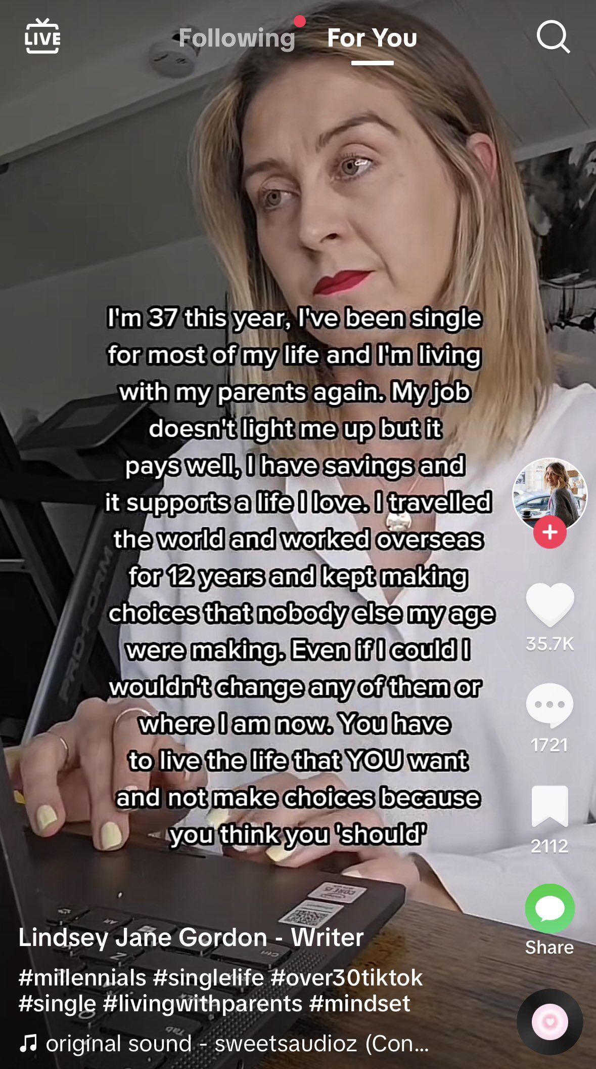 Well that's the point, she's doing it now because she didn't get to do it in her teens/twenties and feels like she was robbed of the chance to experience life and find herself or whatever other bullshit excuse women use to justify being sluts.