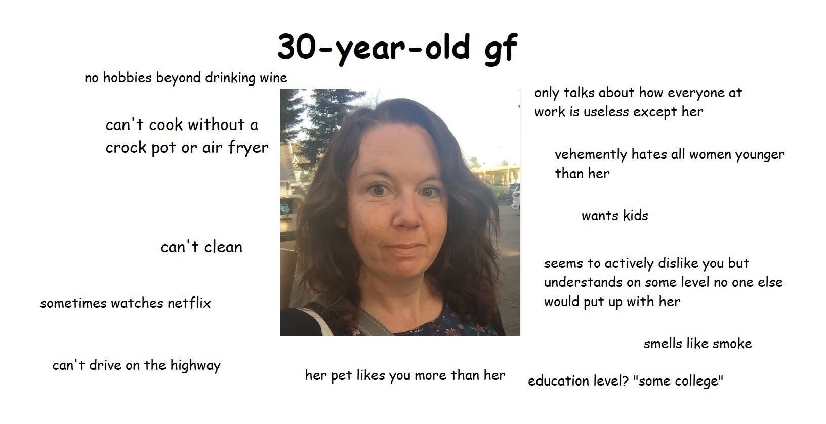 True but honestly that sounds fine to me. You can live with each other for decades without signing the "white woman got bored so time for her to take half of your shit" papers, if you actually like being with each other then what's stopping you? Either kids or a house, I would need one or the other to convince me it's time to tie the knot. The tax benefits ain't worth it.