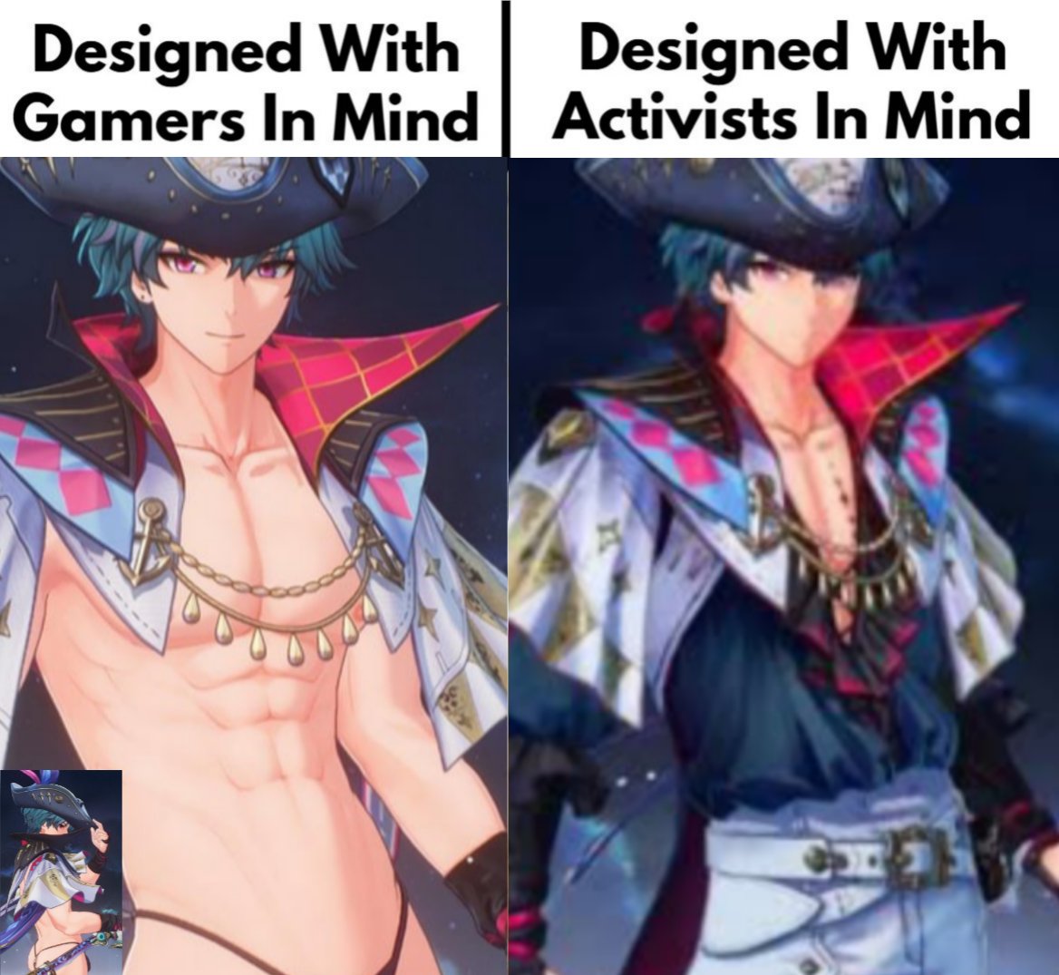This idea that women want to play as scantily clad men is just wrong. No one wants it. Meanwhile both men and women like the sexy women.
