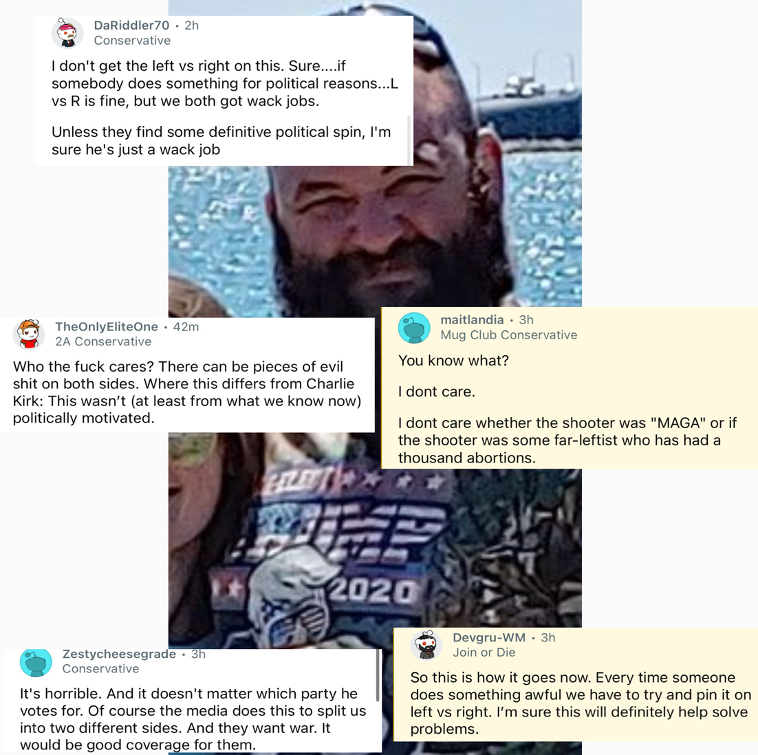 Now make one show what black people say every time a black person murders anyone. Damn its almost like racial tribalism is a thing hooooly crap woaaaaaahhhh that's crazy