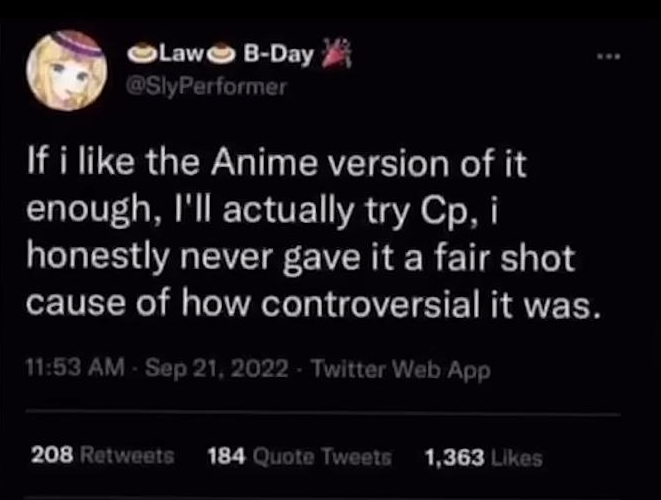 If I were a mod I would ban OP anytime he made a Cyberpunk 2077 thread. Not because I think Cyberpunk 2077 is a bad game. But I think OP is a bad person. That's all. Gonna hide your thread now.