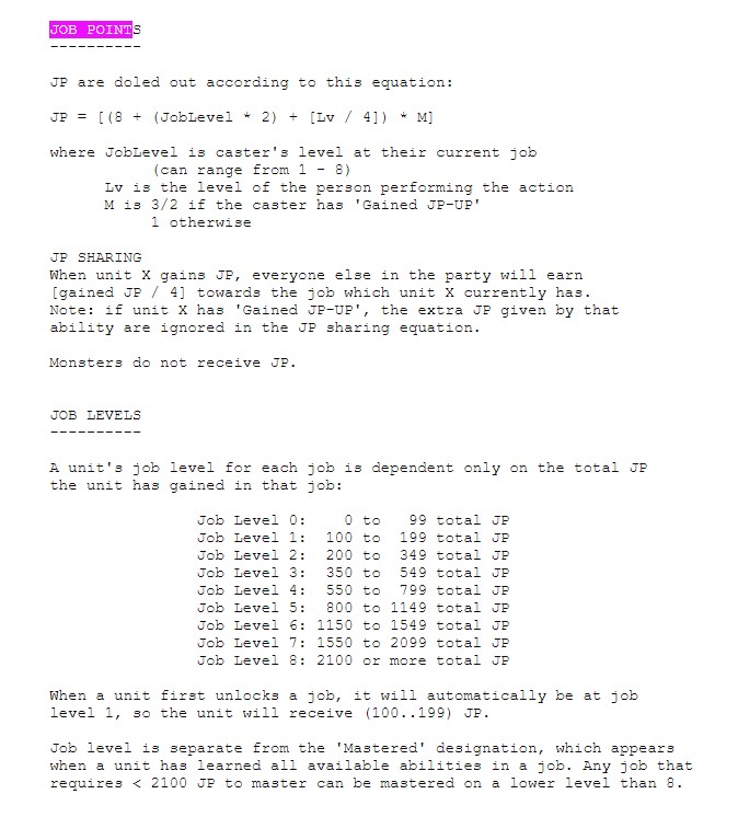 Like, how do I play this game without grinding all the time? Not that I need power, but I always feel like I'm grinding to unlock some ability. Like, let's take Geomancer as a recent example. I'm a noob, so I don't know what terrain counts as what. So, now I'm going into a random battle to unlock all of the job actions cuz I don't know what does what. Same thing with the math job. I bought one of the actions, went into battle, and I couldn't use it, so now I want to grind it out to unlock everything.