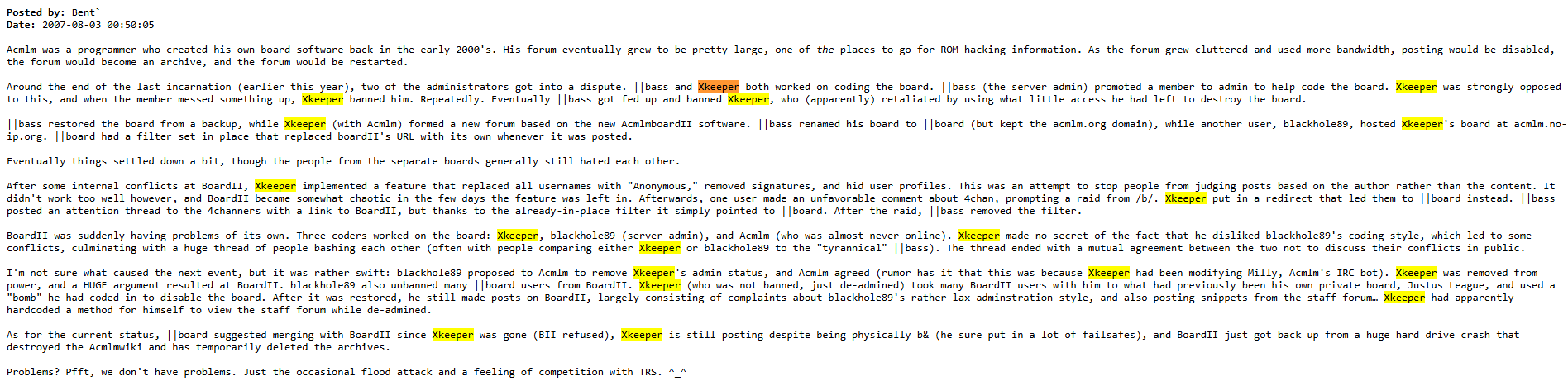 >a thread on the ra forums stayed open for 2 days and ran for 11 pages, but was closed in 10 minutes by hexa after an user named xkeeper