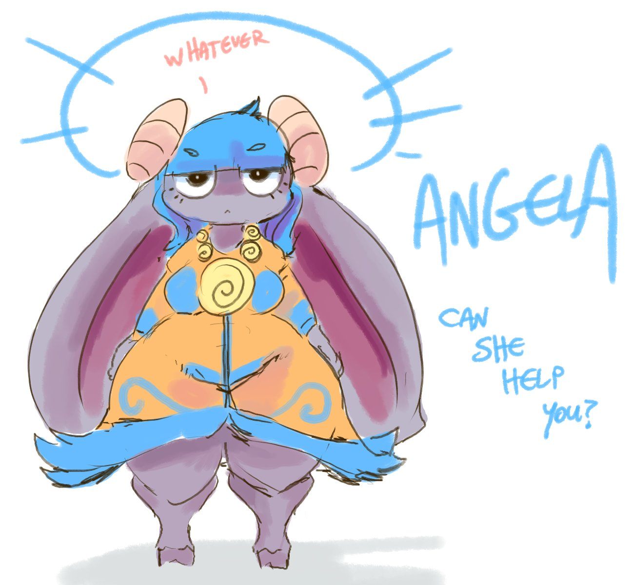 old angelas are too goofy, i like current's more serious and mildly bitchy look