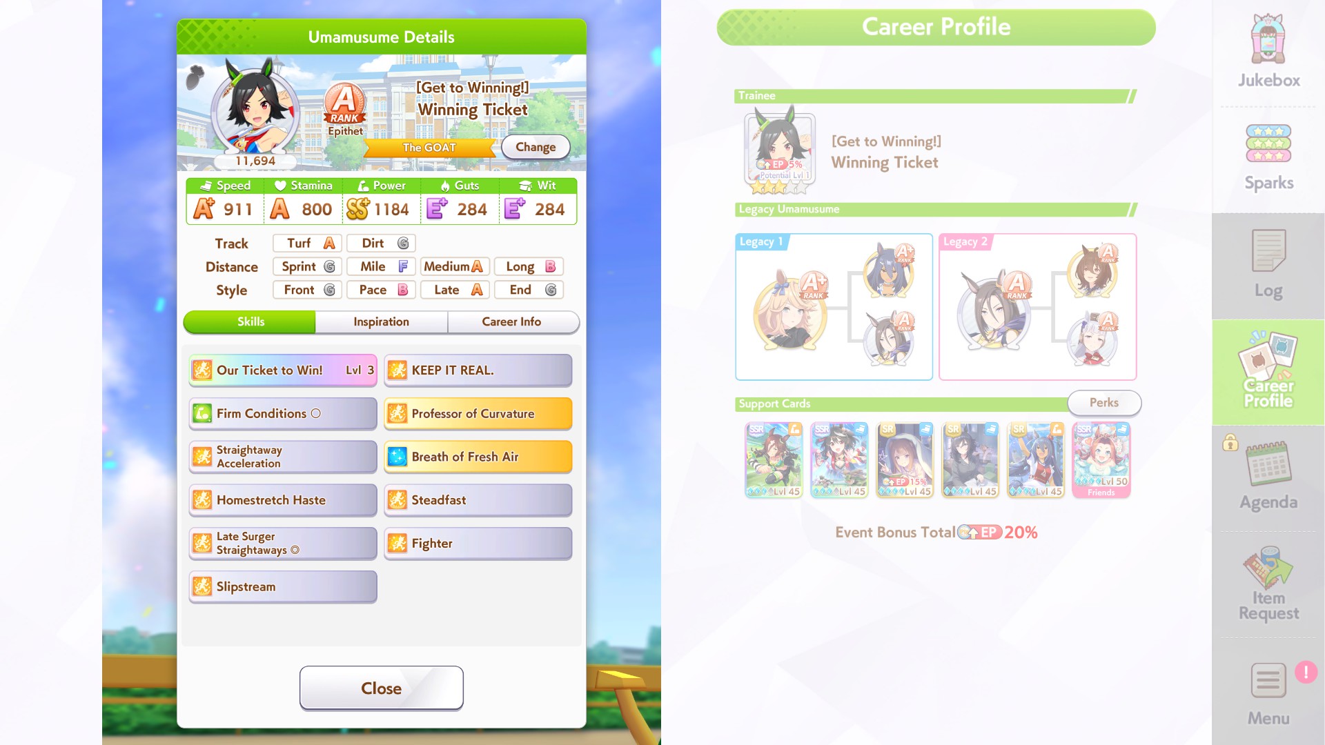 >Speed cards actually fucking showed up to training for once so I hit my target stats