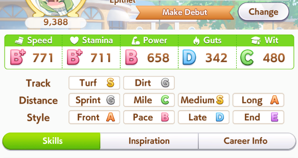 I really want to get her out of the awful default outfit but her stars are expensive and I need them on other umas that gain a lot more from being unlocked
