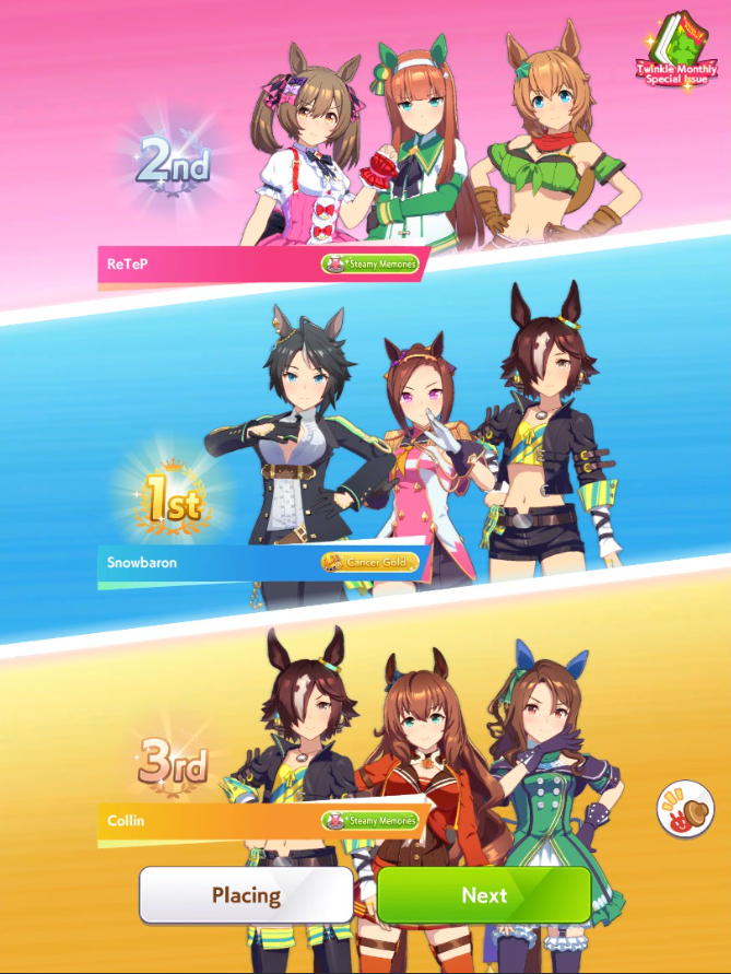 Apparently I wasn't good enough to get into A finals and I kept getting raped, but then in B finals I won so hard all top 3 were my umas. This is why I wanted to get into A finals, I feel kinda bad, I probably made one of these guys quit from frustration. I hate that some trainers can be stuck in this limbo of being too shit for A but too OP for B