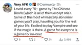 Because those lists are dominated by contrarian reactionaries who engage in agenda-based review/critique. It's perfectly fair to point out that VTMB is better than its mainstream reputation; it did a lot of novel things despite its flaws particularly in the roleplaying department. You'd certainly expect an RPG forum to have a higher opinion of it than everyone else. It's definitely a more interesting game than it's given credit for. But one of the top 3 fucking RPGs of all time? You can't just insist that the nonfuctional combat systems that comprise at least half of the total game interaction don't matter.