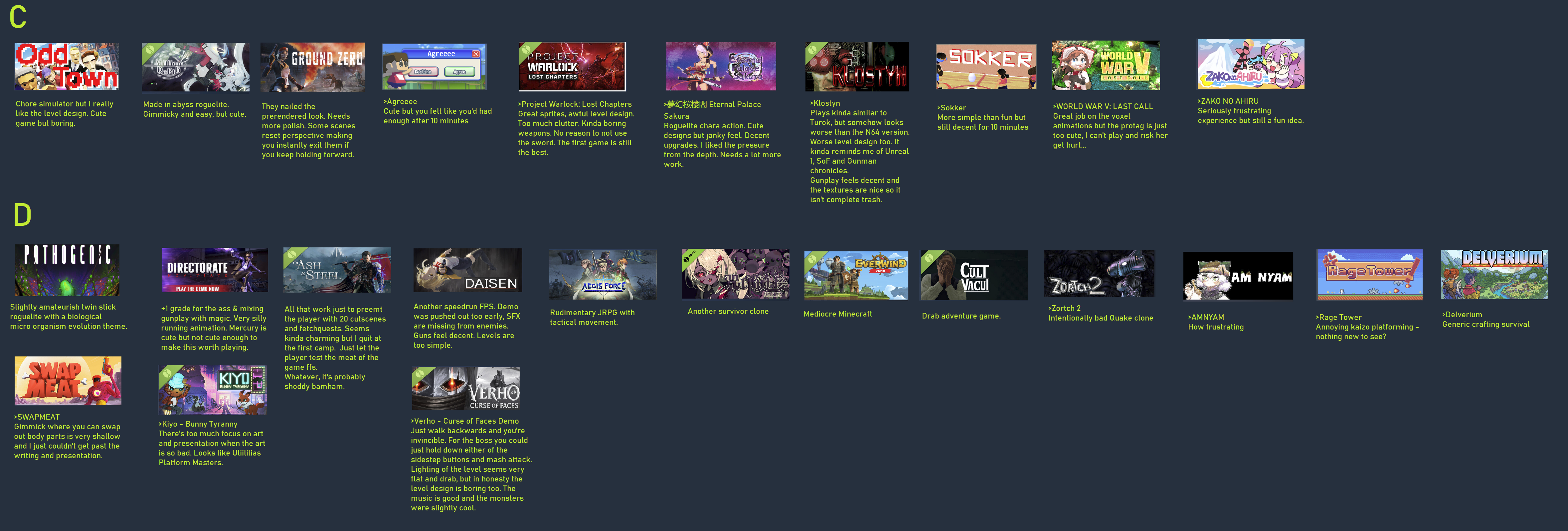 its so much easier to find intresting demos here compared to steam