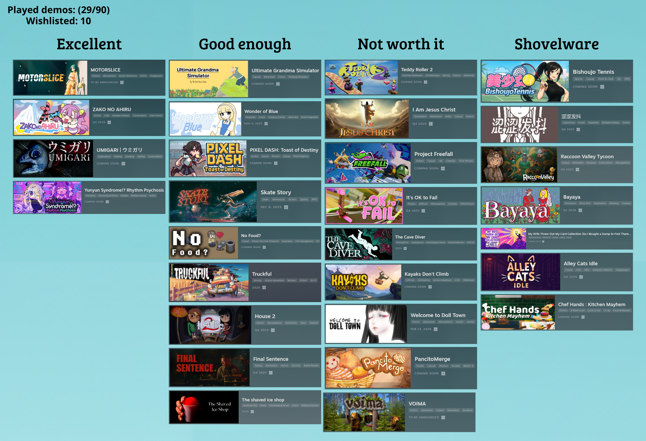 I played 100 demos and there wasn't a single game with something new