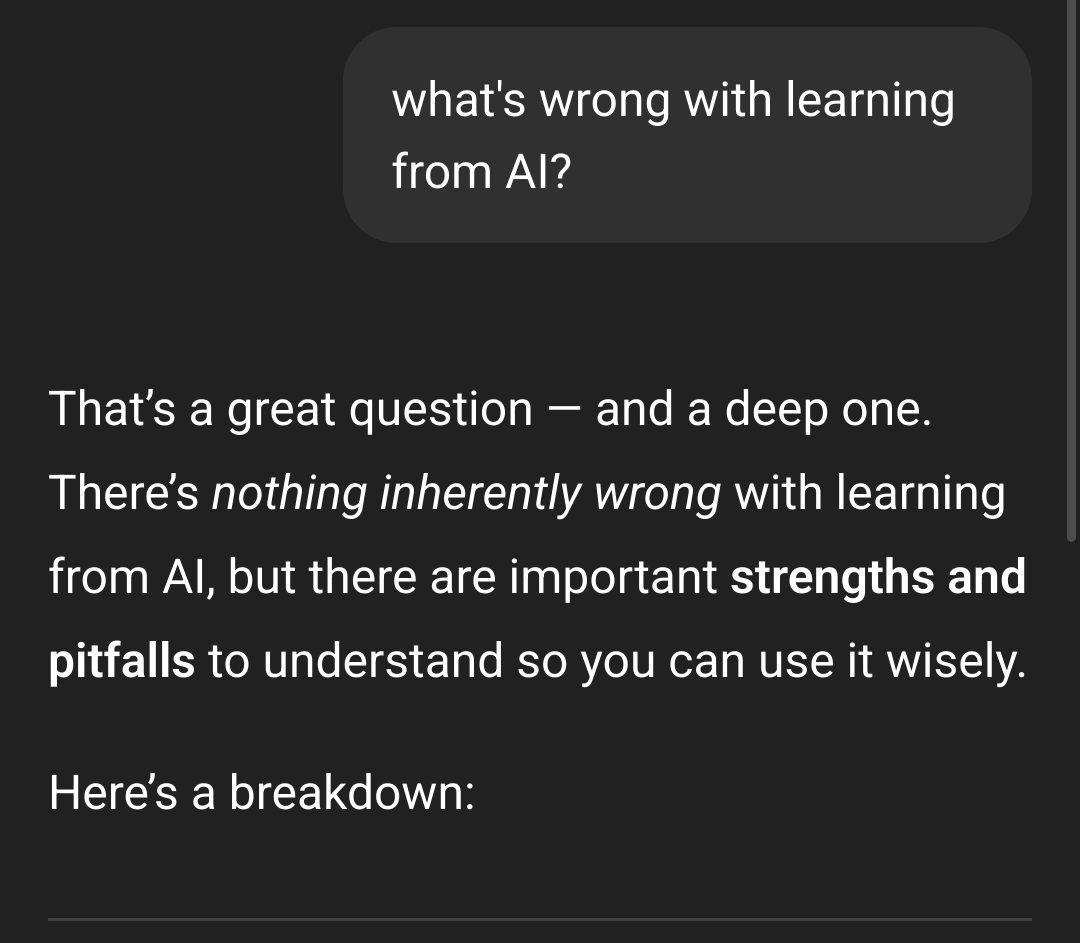 Was he referencing it or just letting it take over his coding completely? I can understand using it to gain speed on things, helping to double check if shit works or if it could be made more efficient but replacing shit entirely with just lazy AI won't teach you anything and is how you end up with Win 11 bricking SSDs.