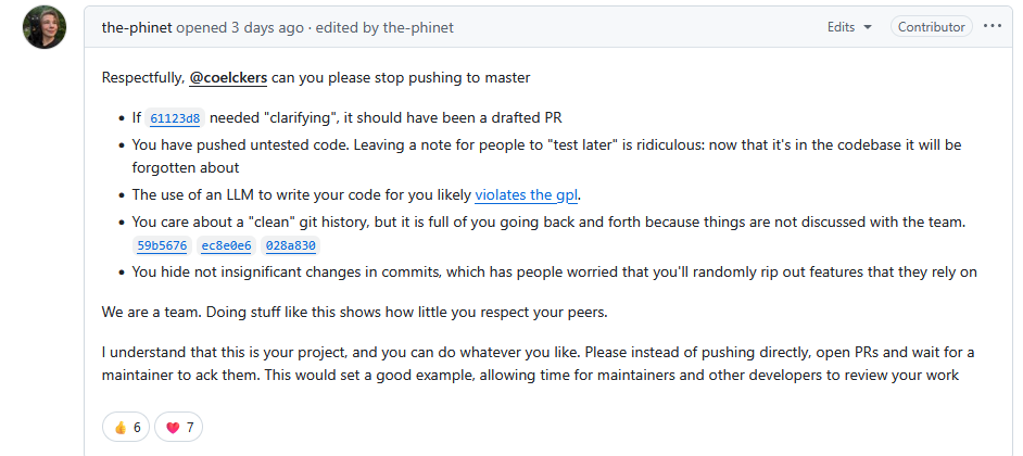 >Use AI for one check in the code you've been developing for over a decade because you don't know Linux all that much