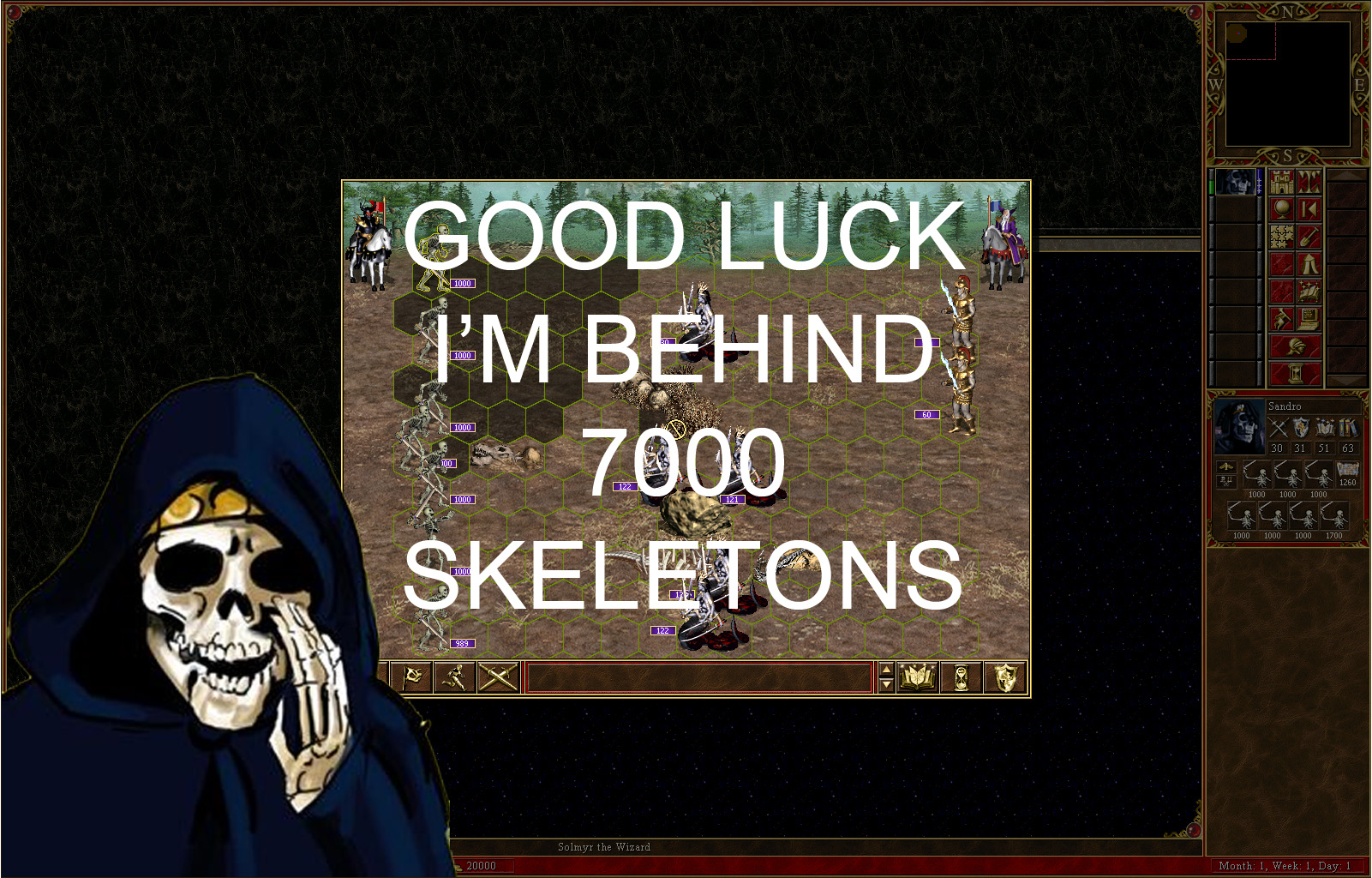 Oh... See, the thing is I was sitting in my base until I got an army size I wanted. It worked in Homm3 when I last played so I figured that tactic would work again.