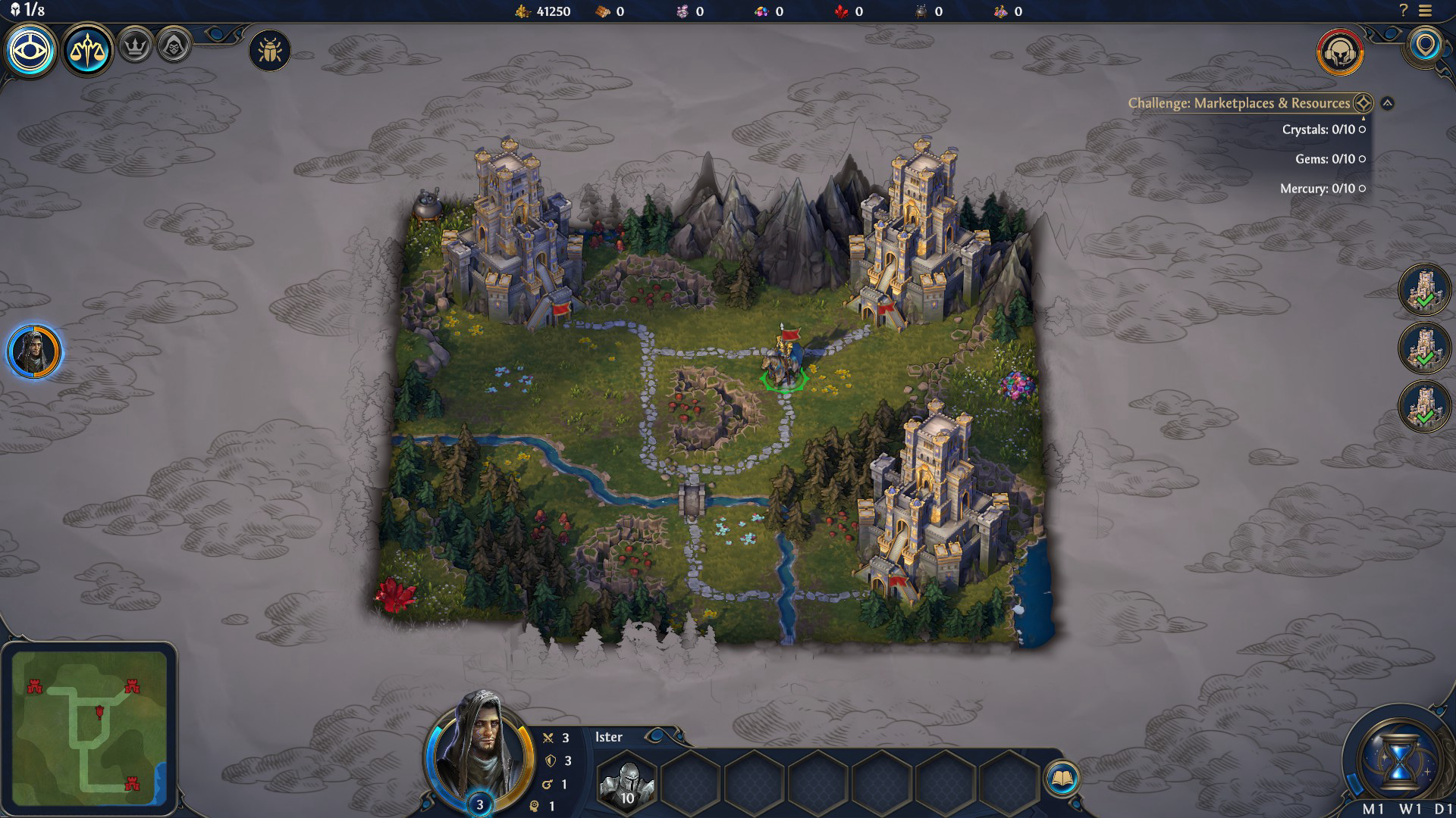 So far I feel like all the map templates they gave us in the demo are extremely packed with dwellings and towns. You really need to play aggressively with multiple heroes and try to capture them early, or you'll get overwhelmed.