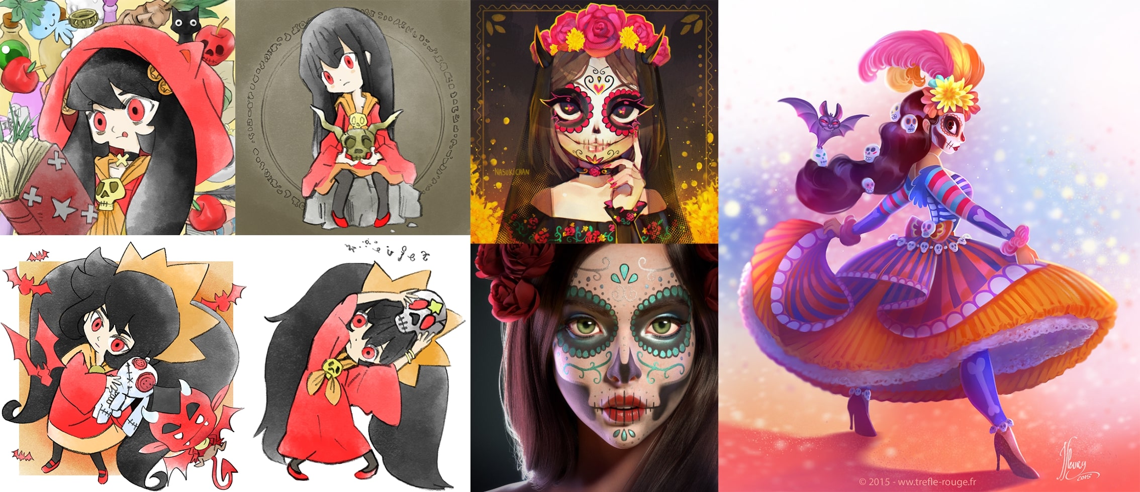 Requesting Ashley in a pretty Catrina costume celebrating Halloween in her new dress. Something like the references on the right.