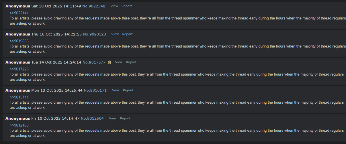 >crossboard drawthread spammer spams the same request on several boards.