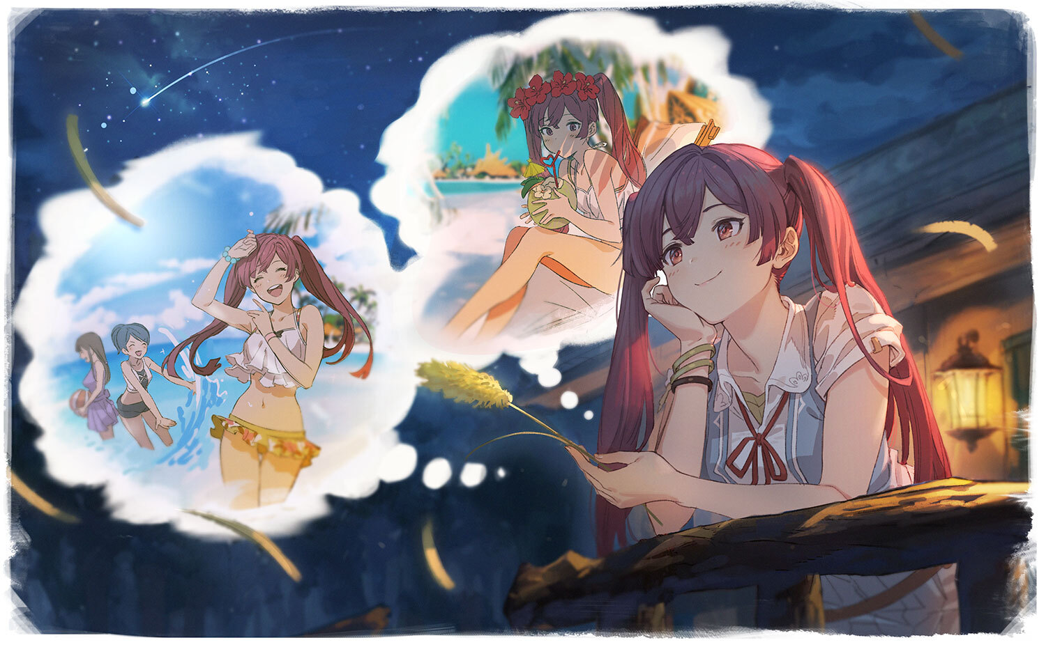 Requesting the Fan Club girl from Rhythm Heaven in a ferris wheel with her holding the viewer's hand readying for a kiss.