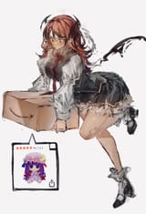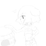 Requesting Modeus with her sitting on the (human) viewer pulling up her shirt letting her breasts out.