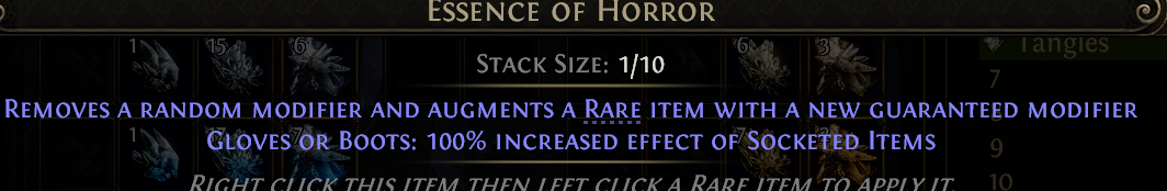 Perfect Battles are 30ex, Haste is 13 ex, horror insanity and hysteria are all multiple divines, even many greater essences are worth multiple exalts because they're used in deterministic crafting