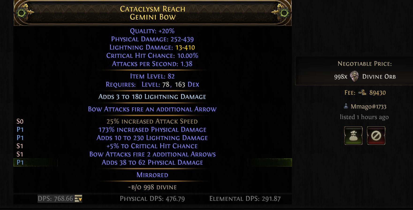 I fucked up remembering whether dextral or sinistral was prefix/suffix and ruined a craft I spent three divs on yesterday. With how expensive omens are I'm pretty sure I'd just be better off selling everything and buying the gear I need directly instead of trying to craft it, since both regular schmoes trying to craft an 80-90th percentile "pretty good" weapon are competing with mirror-tier hideout camping mirror-tier crafters throwing hundreds of divines at shit.