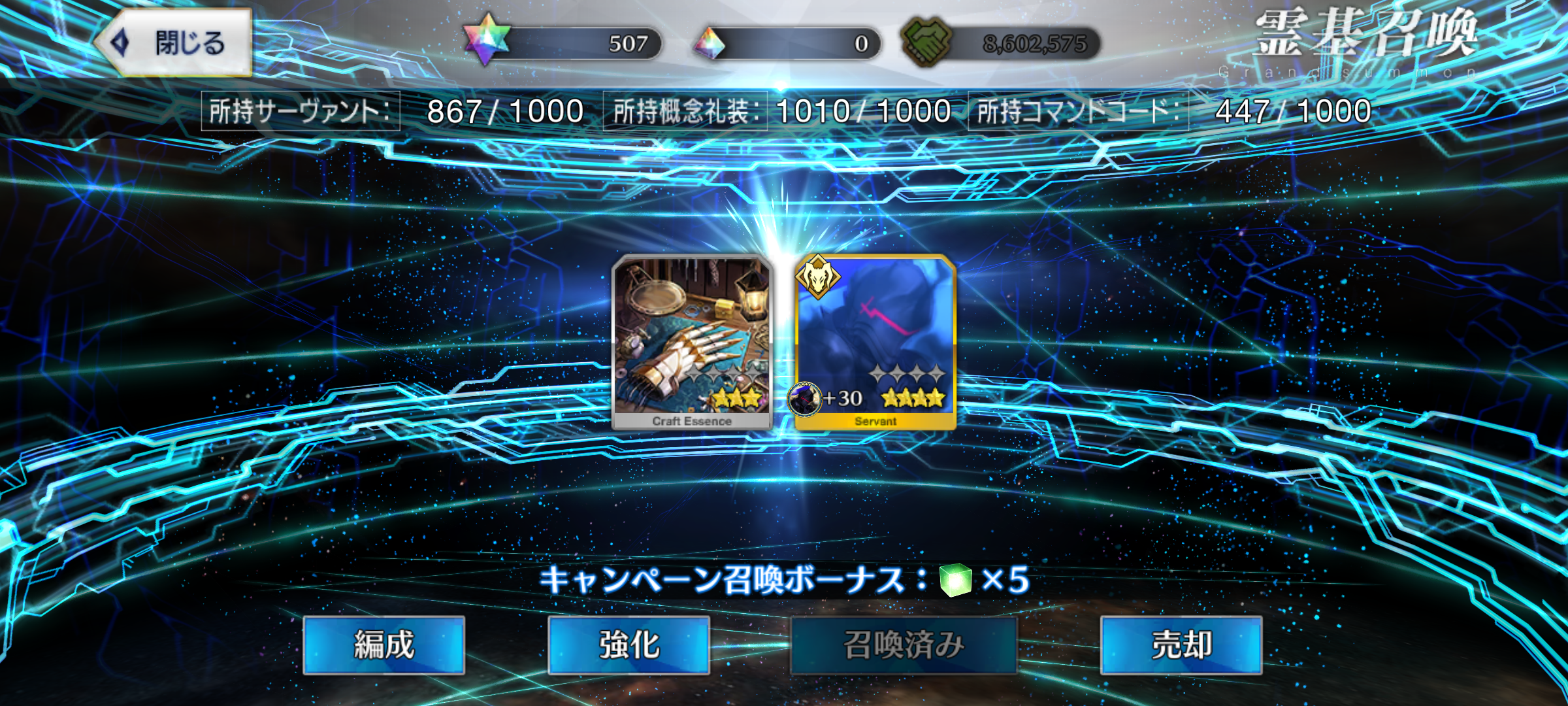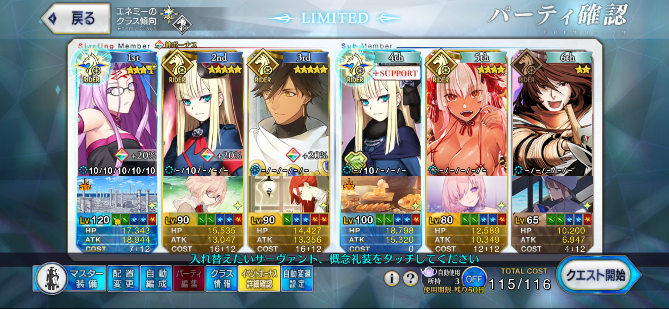 โถPermanent Master missions for unlocking and strengthening Grand Rider: 18 SQ, 7 Grail Tears, 2 5*Fou-kun (1ATK, 1HP),